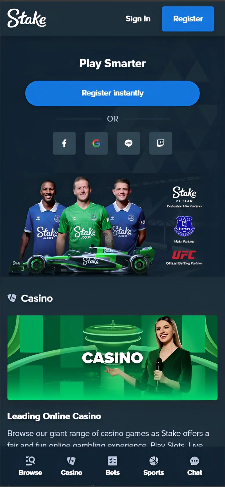 Once you finalise the installation step, you can start to use the Stake app. No matter if you are interested in betting or gambling, the following steps should be taken: